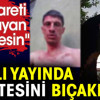 Özgür U., sosyal medya hesabından canlı yayın açarak evinin bahçesinde önüne koyduğu satır ile 2 bıçağı gösterdi.