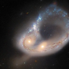 İki galaksinin kütle çekimi mücadelesi, ortaya garip bir halka şekli çıkarmış. Bu şeklin içinde galaksi merkezleri birbirine yakın duruyor ve yıldız püskürmeleri çevrelerinde bir daire oluşturuyor.