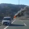 TIR''ı emniyet şeridinde durduran sürücü durumu hemen itfaiyeye haber verdi. Motor kısmında başlayan alevler kısa sürede sürücü kabinini sardı. Durumun bildirilmesi üzerine olay yerine gelen itfaiye ekipleri alev alev yanan TIR''a müdahale ederek söndürdü. Yangın nedeniyle bir şerit trafiğe kapatıldı.
