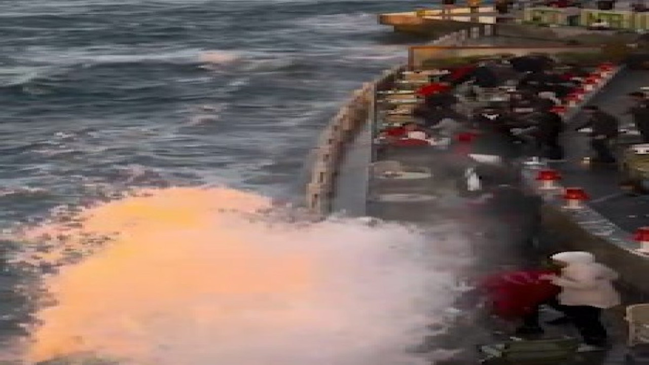 İstanbul'un sahilinde yer alan bir çay bahçesinde keyif yapmak isteyen vatandaşlar, beklenmedik bir durumla karşılaştılar. Denizin kenarındaki bu güzel ortamda oturanlar, ansızın yükselen dalgaların hedefi oldu. Dalgaların şiddetiyle sürpriz bir şekilde ıslanan vatandaşlar, panik içinde kaçışmaya başladı. Bir anda ıslanan vatandaşların panikle kaçışması ise kameraya yansıdı.