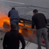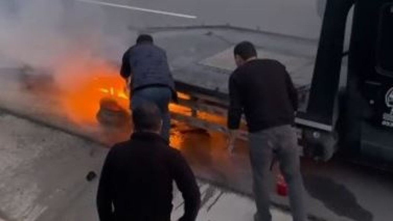 Yangını söndürmek için hiçbir kamyonun durmamasına ise vatandaşlar sitemde bulundu. Yangın güçlükle söndürülürken, değişen lastikler sonrasında çekici yoluna devam etti.