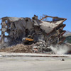 Ekipler çevrede güvenlik önlemi alırken, iş makineleriyle bir yandan binalar yıkılıp diğer yandan da toz taşınımının engellenmesi için sulama çalışmaları yapılıyor.