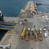 Araçlar görevlilerce ''Ulusoy 5 Ro-Ro'' gemisine yükleniyor. Çalışmaların tamamlanmasının ardından geminin bu akşam İskenderun Limanı'na doğru hareket etmesi bekleniyor.