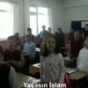 Videoda, 6. sınıf öğrencilerininöğretmenin talimatı doğrultusunda ayağa kalktığıve "Elimizde Kur’an, kalbimizde iman, Müslüman’ız Müslüman, yaşasın İslam..." şeklinde devam edenbir metni hep birlikte okuduğu görünüyor.