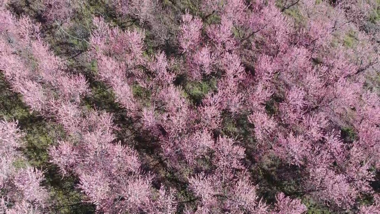 Çiçek açan meyve ağaçları kartpostallık görüntüler oluşturdu. Masalsı görüntüler dron ile görüntülendi