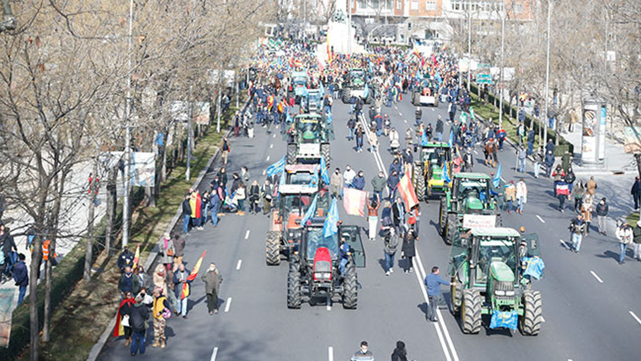 Ülkedeki 2 milyondan fazla tarım ve hayvancılık sektörü çalışanının bağlı oldukları 200 kadar derneğin çağrısıyla Madrid'de toplanan çiftçiler, traktörleriyle şehir merkezinde turladı.