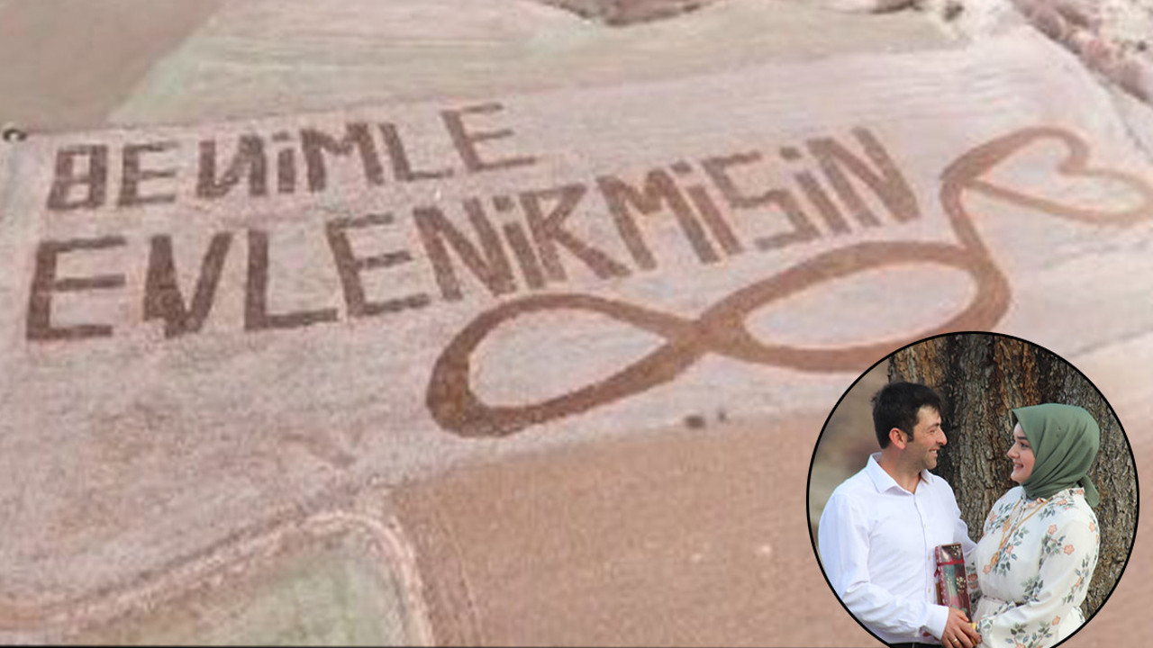 Kız arkadaşı Ayşe Nur Candan'a evlilik teklifinde bulunmak isteyen Cihat Ayva, ilginç bir yöntem seçti. Tarlasına traktör pulluğu ile "Benimle evlenir misin?" diye yazıp, o anları dron ile kayıt altına aldı.