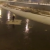 Bayburt''taki Çoruh Nehri kısmen dondu. Nehirdeki buz kütlesini kıran Burak Yılmaz isimli vatandaş, 15 santimetre kalınlığındaki parçayı sal gibi kullanıp, 200 metre ilerledi.