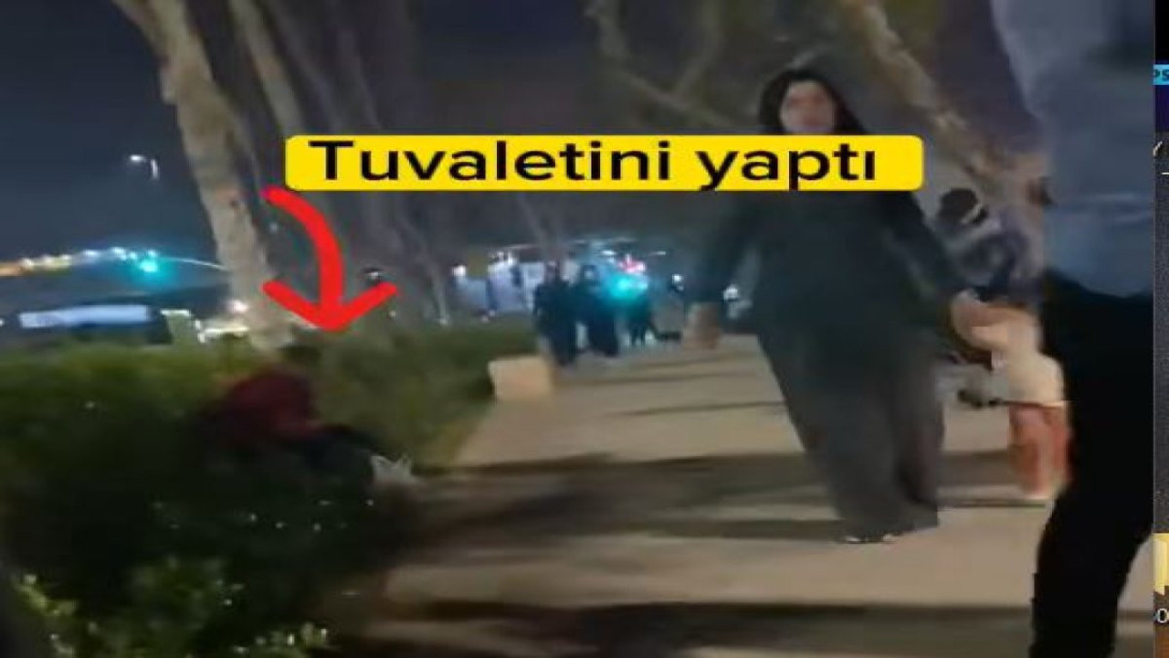 İstanbul'da çekildiği ileri sürülen görüntüde bir kişi, kaldırımdan yürüyenlerin gözleri önünde çömelme pozisyonu alarak tuvaletini 'basmayın uyarısı'nın bulunduğu çimlerin üzerine yaptı.