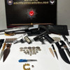 Cinayet zanlısının kaldığı konteynerde arama yapan ekipler, 1 adet av tüfeği, 2 adet avcı bıçağı, 2 adet kama, 1 adet ruhsatsız tabanca, 1 adet kurusıkı tabanca, 95 adet kurusıkı tabancaya ait mermi, 1 adet metal teleskopik jop, 1 adet kalem tabanca, 10 adet kalem tabancaya ait mermi, 23 adet antika olduğu değerlendirilen madeni para ele geçirildi. Ş.Ö.’nün polis merkezindeki işlemlerinin sürdüğü bildirildi.