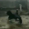 Bir kaç yavrusunun orada kaldığını gören tavuk, yine saldırıya geçti. Hamlesini yaptıktan sonra tavuk duvar dibine sinmiş yavrularının yanına gidip, kendisini takip etmelerini sağladı.