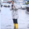 Fulya Öztürk, Beşiktaş Zincirlikuyu’da göle dönen yollarda dizine kadar gelen yağmur suyunda İstanbul hava durumuna dair haberleri sunmaya devam etti. Yağışın sokaklara verdiği olumsuz etkiyi gösteren Öztürk, yağmur suyundan korunmak için ayağına sarı çizmeler giydi.