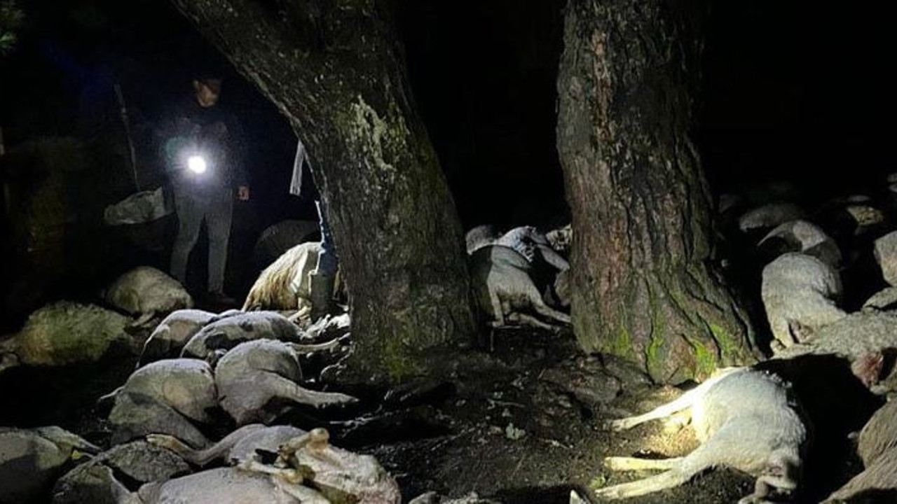 Bu sırada ağacın bulunduğu noktaya yıldırım düştü. Çoban Mehmet Kürkçü yaralanırken, sürüdeki koyunlardan 76'sı telef oldu.