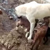 Başpınar Mahallesi''nde çobanlık yapan Beyazid Sayar, 3 oğlağını çoban köpeğinin emzirdiğini fark etti.Oğlakları anneleri olmasına rağmen, köpeğin emzirdiğini gören Sayar, o anları cep telefonuyla kayda aldı.