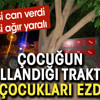 Aktarılanlara göre Çatyol mevkiinde 11 yaşındaki K.A.'nın kullandığı traktör, çocuğun kontrolünden çıkarak yol kenarında oynayan çocukların arasına girdi. Araç bir evin duvarına çarparak durabildi.