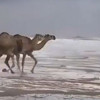 Bölgedeki turistler kar görmenin heyecanı beyaza bürünen çöle akın ederken, turistler tarafından çekilen çölde karın tadını çıkaran devenin görüntüsü izlenme rekorları kırdı.