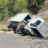 Kazada kamyonun sürücüsü sürücüsü Mehmet Kara ve araçta bulunan belediye temizlik işleri personelleri İsmail Keleş ile İsmail Özcan yaralandı.