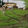 Çal köyü yakınlarında mahsur kalan iş makinesini Alaca Belediyesine iş makineleri tarafından kurtarılmaya çalışılıyor. (İHA)