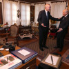 Cumhurbaşkanı Erdoğan, Bahçeli''nin öğrencilik yıllarına ait kütük defterinin yer aldığı tabloyu ve üzerinde üç hilal bulunan sedef kakma kutu içindeki kitabı MHP liderine hediye etti.