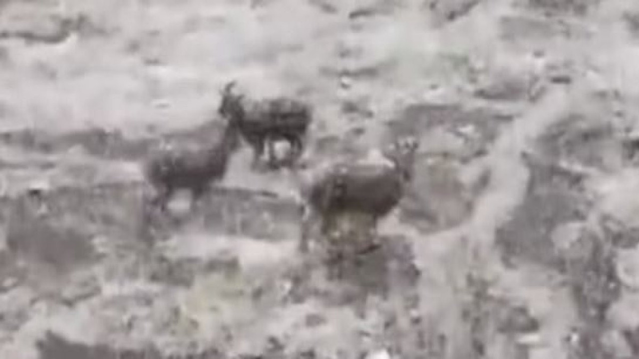 Yiyecek arayan dağ keçileri daha sonra gözden kayboldu.