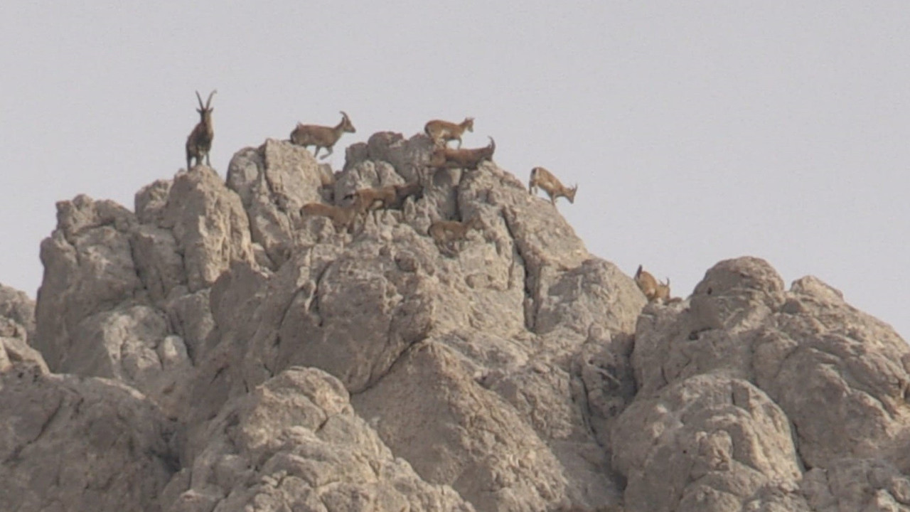 Kahramanmaraş’ın Elbistan ilçesinde ‘dağların süsü’ olarak adlandırılan yaban keçilerinin yaklaşık 150 bireyden oluşan en büyük sürüsü Doğa Koruma ve Milli Parklar (DKMP) ekiplerince dronla görüntülendi.