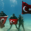 Dalgıçlar ayrıca Türk bayraklarıyla temsili "tören geçişi" yaptı.