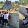 Kanal kenarındaki Mehmet Karadağ'ın kullandığı kepçeye takılan halatla çekilen dana, kanaldan çıkarıldı. Köylüler, benzer olayların yaşanmaması için kanal çevresinde tedbir alınmasını istedi.