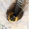 Bölgeye ulaşan ekipler, 1,5 metre genişliğinde 13 metre derinliğinde kazılan çukurda mahsur kalan 3 kişinin kurtarılması için çalışma başlattı.