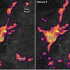 Soldaki fotoğraf 4 Şubat 2023''teki alanı gösteriyor; sağdaki harita ise aynı bölgeyi 8 Şubat''ta gösteriyor.