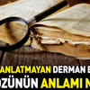 Derdini anlatmayan derman bulamaz atasözüyle asıl anlatılmak istenen şey; Hayatında karşısına çıkan sorunları tek başına çözmeye çalışan ancak bu konu hakkında da başarılı olamayıp, çevresine de hiçbir şey söylemeyip umutsuzca sorunlarına mucizevi çözüm bulmaya çalışan kişilere tembih amaçlı söylenen sözdür.