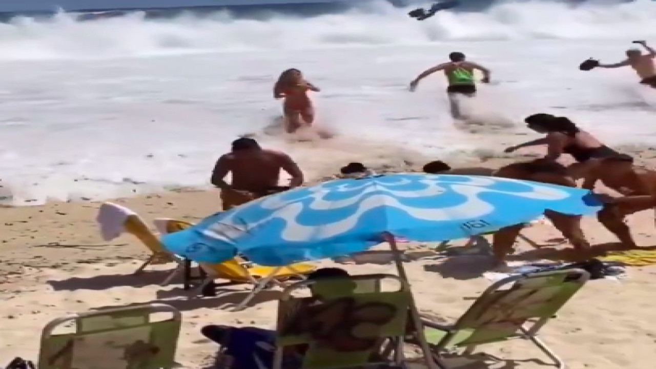 Brezilya sahilinde güneşin tadını çıkaran tatilciler, aniden gelen dev dalganın şiddeti karşısında büyük bir şok yaşadılar. Sahilde keyif yaparken birdenbire gelen dev dalga, tatilcileri hazırlıksız yakalayarak panikle kaçmalarına neden oldu.