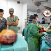 Hastanın riskli bir ameliyat geçirdiğini kaydeden Çelik, "Beyne pıhtı atmış olması, kalp damarının tıkanık olmasından ötürü, hastanın kalbinin yüzde 15'i çalışıyor olmasını çok yüksek riskli bir hastalık olarak değerlendirdik. Gerekli anestezi hazırlıkları yaptık ve uygun şartlarda ameliyata almaya karar verdik. Ameliyata aldığımızda da gördüğümüz, düşündüğümüz şeyle karşılaştık, kocaman, dev bir kitle. Tabii ameliyatı öyle kolay olmadı. Tabiricaizse, yüreğimiz ağzımızda ameliyat yapmak zorunda kaldık. Kocaman kocaman damarlarla ilintileri vardı. Sol böbrekle ilintili olduğunu görünce, tümörü sol böbrekle beraber almak zorunda kaldık. Ameliyat yaklaşık 1,5 saat sürdü. Böyle solid ve böbrek kaynaklı bir kitleyi literatürde hiç göremedim. Bu sadece Türkiye için değil, dünya çapında bir şey; kaynaklarda rastlamadım. İlk olması da çok değerli bir şey" diye konuştu.