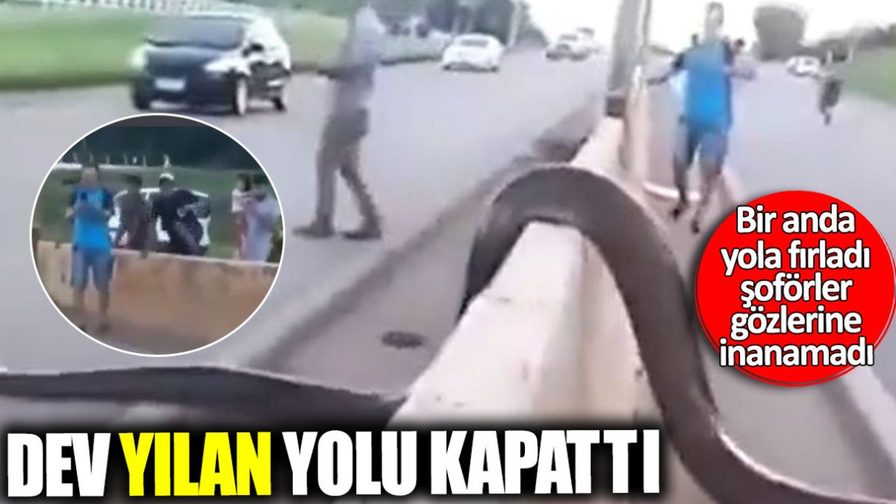 Hem araç içinde bulunanlar hem de yol kenarındaki yayalar yılanı görünce şaşkınlığını gizleyemeyip o anları cep telefonlarıyla kaydettiler.