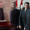 CHP Genel Başkanı Özel, TBMM Başkanı Kurtulmuş’un yanında, MHP Genel Başkanı Bahçeli, Özel’in arkasında; İYİ Parti Genel Başkanı Dervişoğlu ise en arka sırada yürüdü. Törene, DEM Partililer katılmadı.