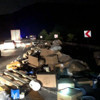 Karayoluna savrulan inşaat malzemeleri toplanırken, belediye ekipleri de dökülen mazot nedeniyle yolu yıkadı. Bu çalışmanın ardından trafik akışı tek şeritten kontrollü olarak sağlandı.