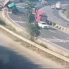Öte yandan kaza anı güvenlik kamerasına yansıdı. Görüntülerde, kontrolden çıkan tırın yol kenarına girdikten sonra devrildiği ve metrelerce sürüklendiği görüldü.