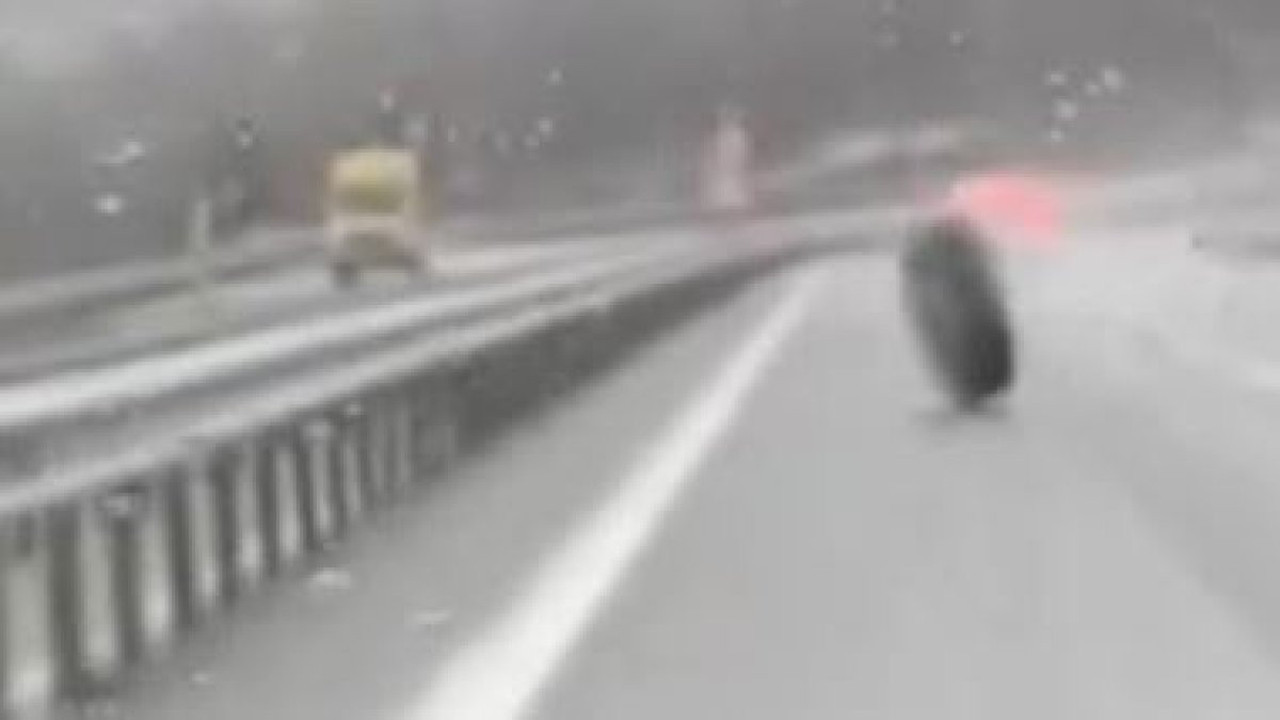 Durumu fark eden diğer sürücüler araçlarını yavaşlatarak o anları cep telefonu kamerasıyla görüntülendi. Görüntülerde lastiğin yol boyunca ilerlediği ve bariyere çarptıktan sonra durduğu görüldü.