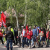 Ellerinde farklı sendika bayrakları taşıyan çalışanlar, düdük çalarak parkın içinde yürüdü.