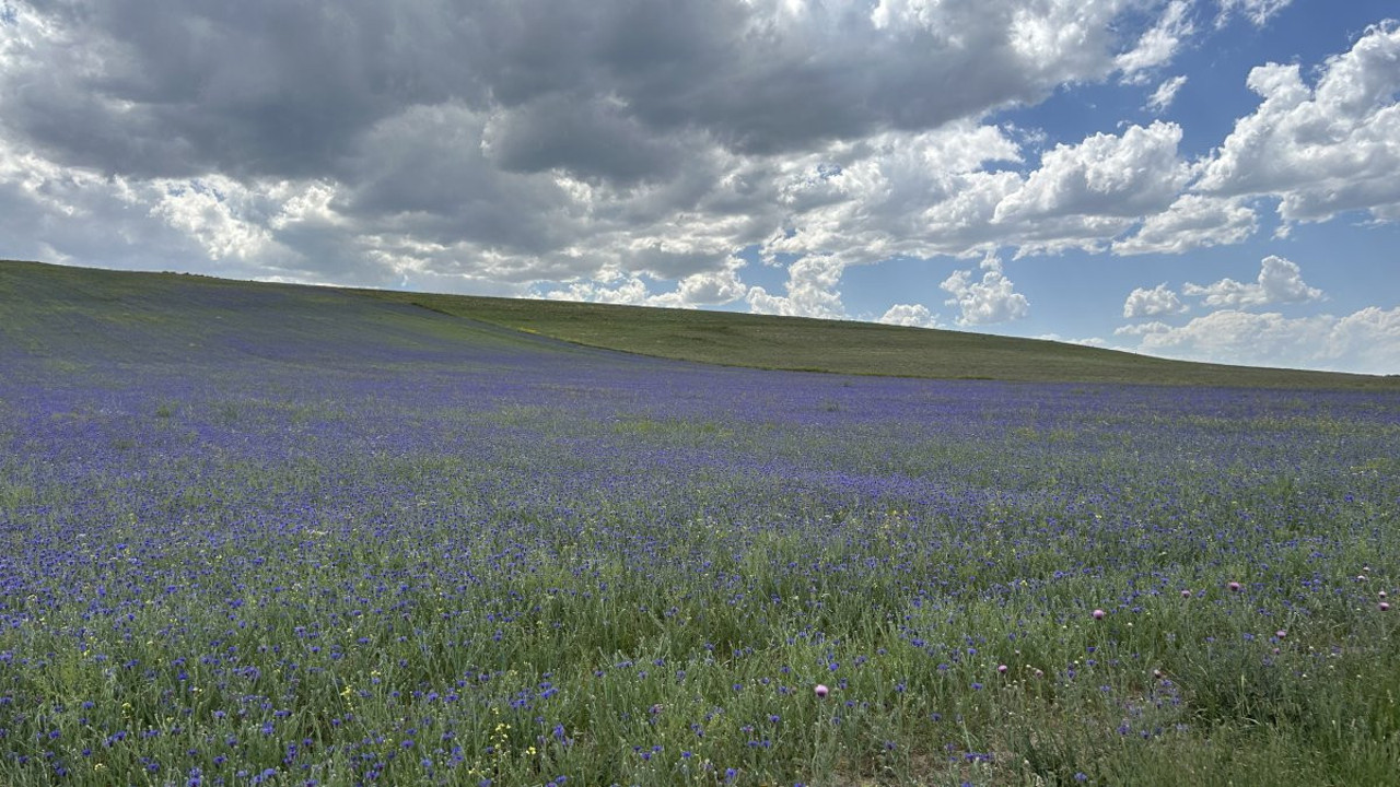 Geniş alanlara yayılan peygamber çiçekleri (Centaurea cyanus), mavi ve mor renkleriyle adeta görsel bir şölen sunuyor.