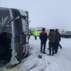 Organize Sanayi Bölgesi'ndeki firmada çalışan işçileri taşıyan Medeni Erdel'in kullandığı 21 S 0939 plakalı servis midibüsü, yoğun kar yağışı nedeniyle kayganlaşan yolda kontrolden çıkıp, devrildi.