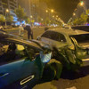 İçerisinde 10 kişinin bulunduğu otomobil, sürücüsünün direksiyon hakimiyetini kaybetmesi sonucu park halindeki iki otomobile çarptı.