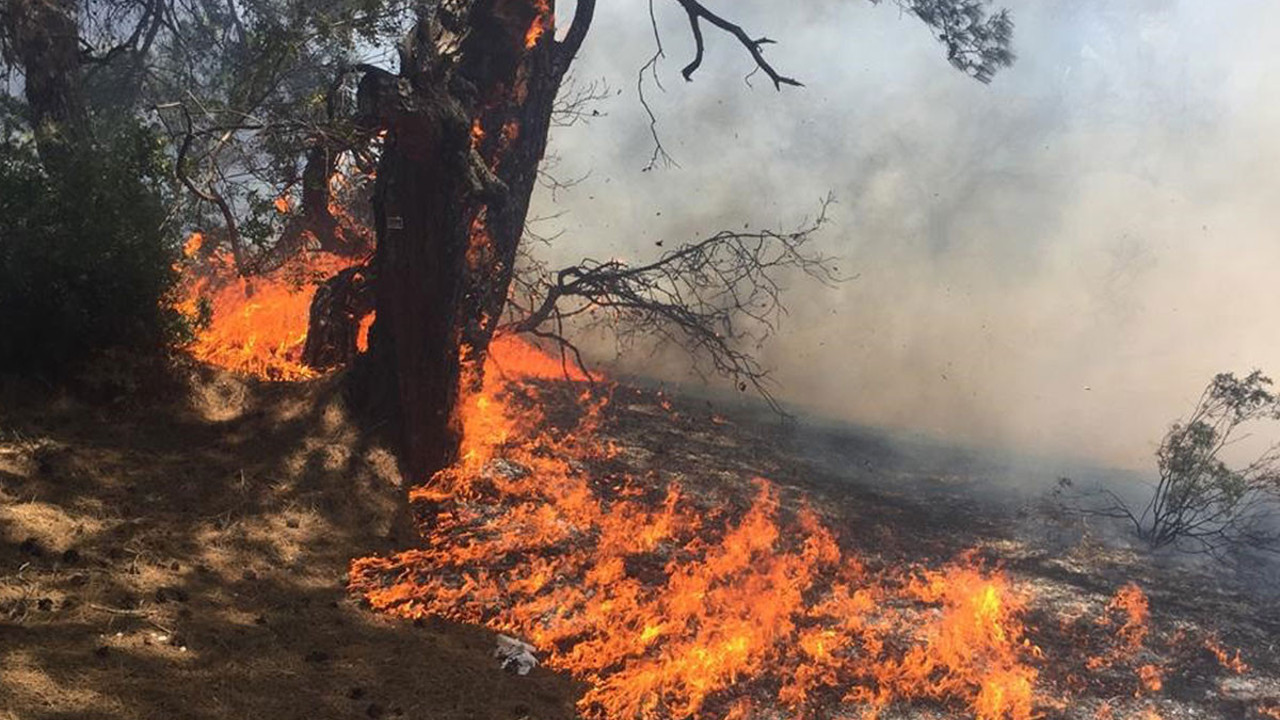 Alevler, rüzgarın da etkisiyle hızla büyüdü. Çam ağaçları ile yerdeki bitki örtüsünün alevlere teslim olduğu bölgeye, Orman Bölge Müdürlüğü personeli, Büyükşehir Belediyesi itfaiye ekipleri, arazözler ve helikopter sevk edildi. Yangın, yaklaşık 1 saatlik çalışmayla söndürüldü.