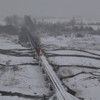 Erzincan'da yağan yoğun kar yağışının ardından her taraf beyaz örtüyle kaplanırken, Doğu Ekspresi treninin Beşsaray köyündeki Fırat Nehri üzerine kurulu köprü üzerinden geçişi masalsı görsel oluşturdu.