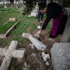 Hristiyan din adamı, 2014’te mezarlığa düzenlenen saldırıda 40''tan fazla mezar taşının kırıldığını belirterek, basın mensuplarına, daha önce kırılan mezar taşları üzerindeki tamir izlerini gösterdi.