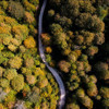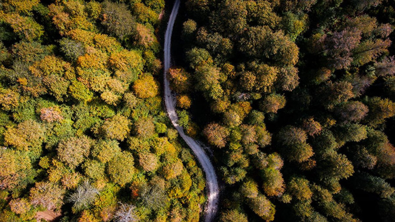 Yeşil ve sarı tonlara sahip kayın, meşe ve çam ağaçlarının oluşturduğu manzaralar dronla görüntülendi.