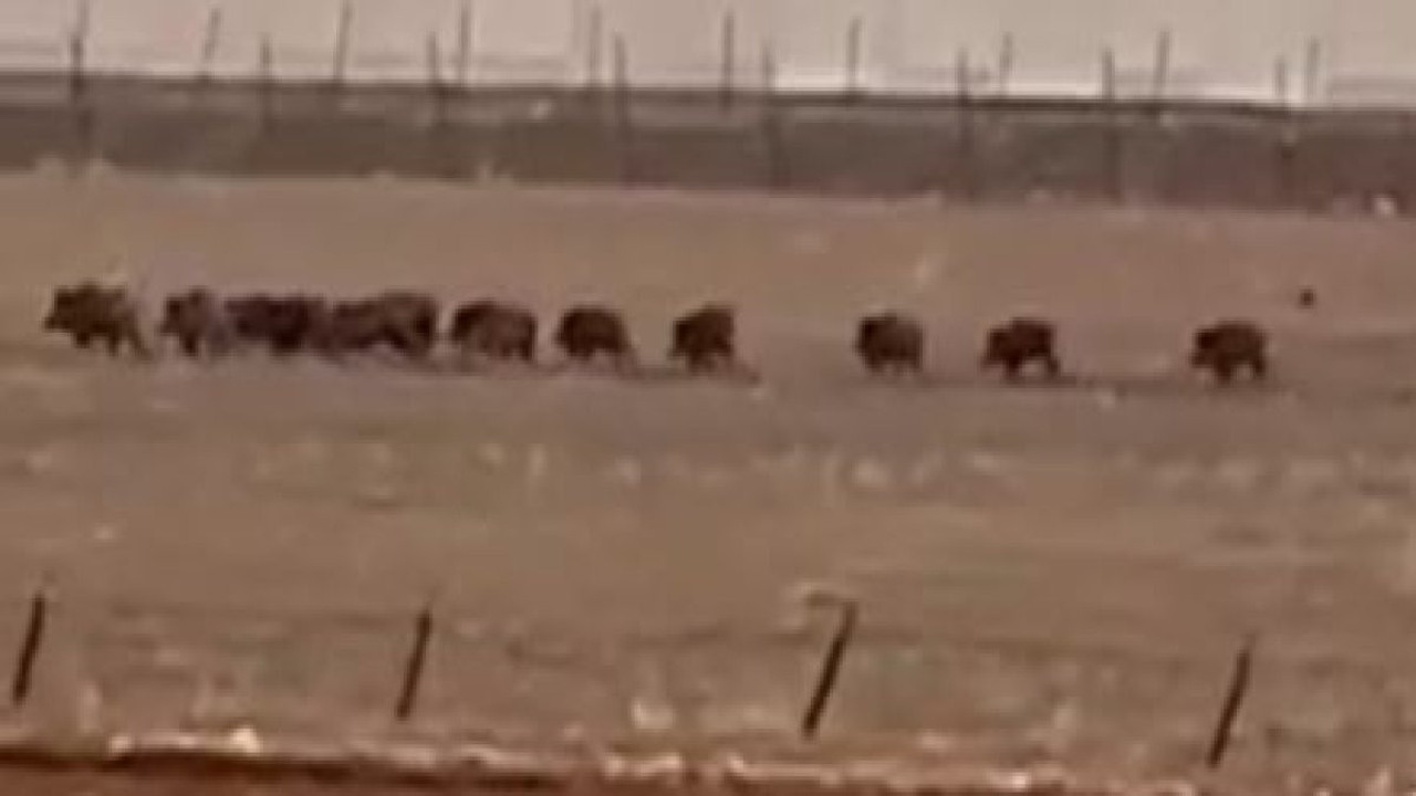 O anlar bir vatandaş tarafından cep telefonu kamerasıyla kaydedilirken domuz sürüsü daha sonra gözden kayboldu.