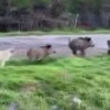 Sokak köpekleri domuzları kovalarken, vatandaşların arasında koşan domuz ve köpekler ilginç bir görüntü oluşturdu.