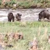 Bir süre yavrularıyla birlikte yiyecek arayan ve su ihtiyaçlarını karşılayan domuz sürüsü, daha sonra bölgeden uzaklaşarak gözlerden kayboldu.