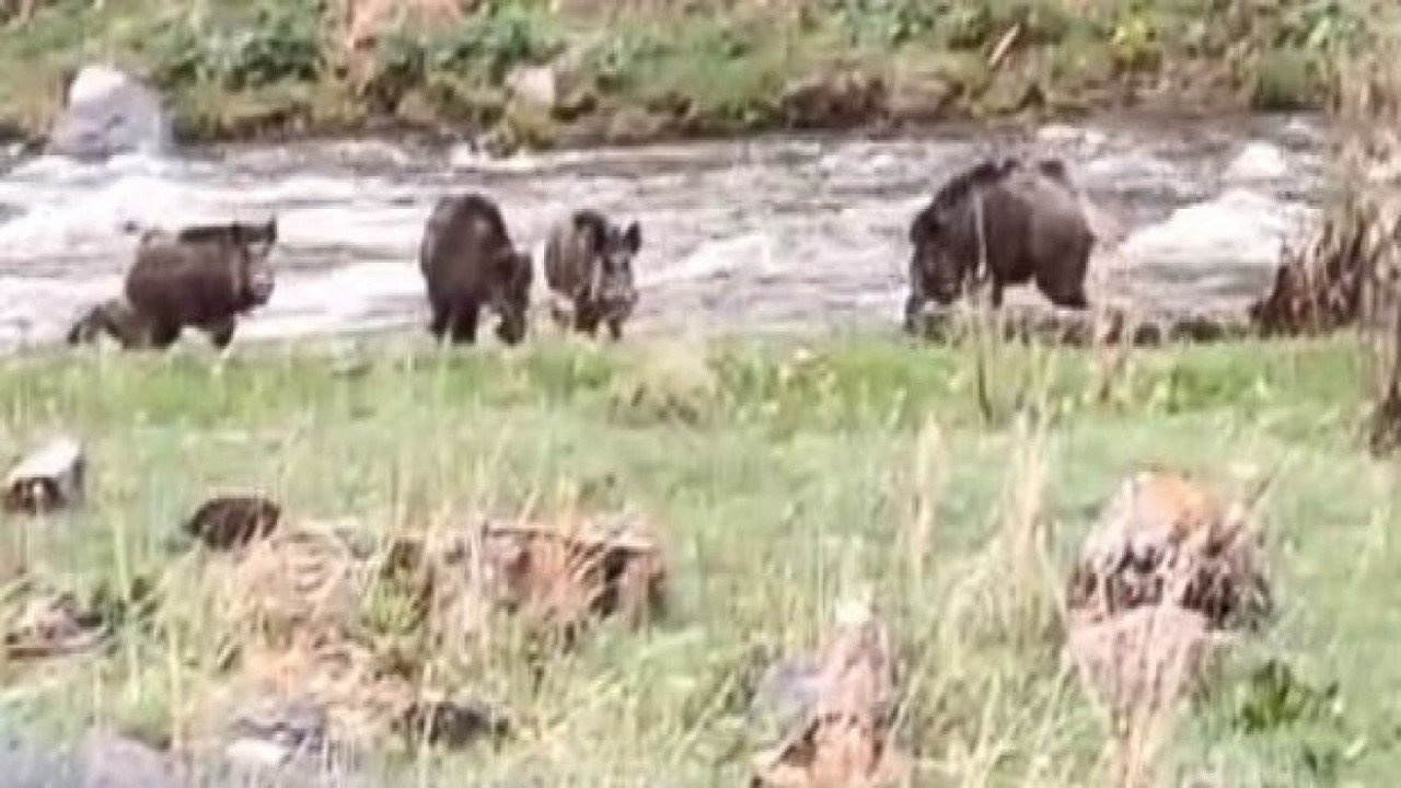 Kars-Göle karayolunda aracıyla yolculuk yapan Vedat Demiral, yol kenarından coşkuyla akan dere kenarında domuz ve yavrularını fark etti. Cep telefonuyla domuz sürüsünü çekmeye başlayan Demiral ve yanındaki arkadaşının diyaloğu ise dikkat çekti.