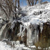 Bitlis'in Tatvan ilçesinde bulunan ve soğuk hava nedeniyle donan Arpet Şelalesi kartpostallık görüntüler oluşturdu.